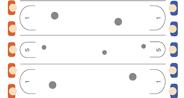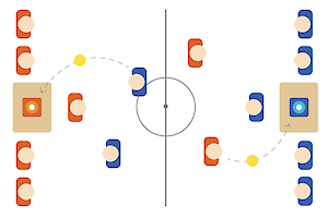 Houd de XL-tennisbal zo lang mogelijk in de lucht en probeer hem in het vak van de tegenstander te krijgen.
